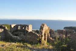 Of the ancient buildings that exist in the entire Southern region, the Himarë Castle is the most grand. The fortification is perched atop a 140-meter-high hill, and afforded natural protection from the northeast and southeast precipice. Ancient traces of an eighth century B.C. wall is what has defines the line of the current form. These ancient walls are combined with trapezoidal outcroppings, which surround the hill from the northeast to the northwest, leaving the precipice that rises above the Visha River unfortified.