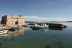 The tower Lodi dates back to the 16th century and is a part of the former fortified settlement Nehaj built in 1548 by two noblemen from Trogir – Ljudevit and Ivan Lodi. The tower Lodi is built on the sea reef, historically probably connected to the coast with a bridge. It is a square shaped building that remained unfinished – built only to its first floor it consists of two rooms with a barrel vault. It is an isolated structure, unpopulated, with a small port nearby that local people use for their fishing boats. Due to its state and location it has no permanent function, although through the recent history it was used as a disco-bar and a restaurant. Today it has no clear purpose and it is occasionally used by the local NGOs for their activities.